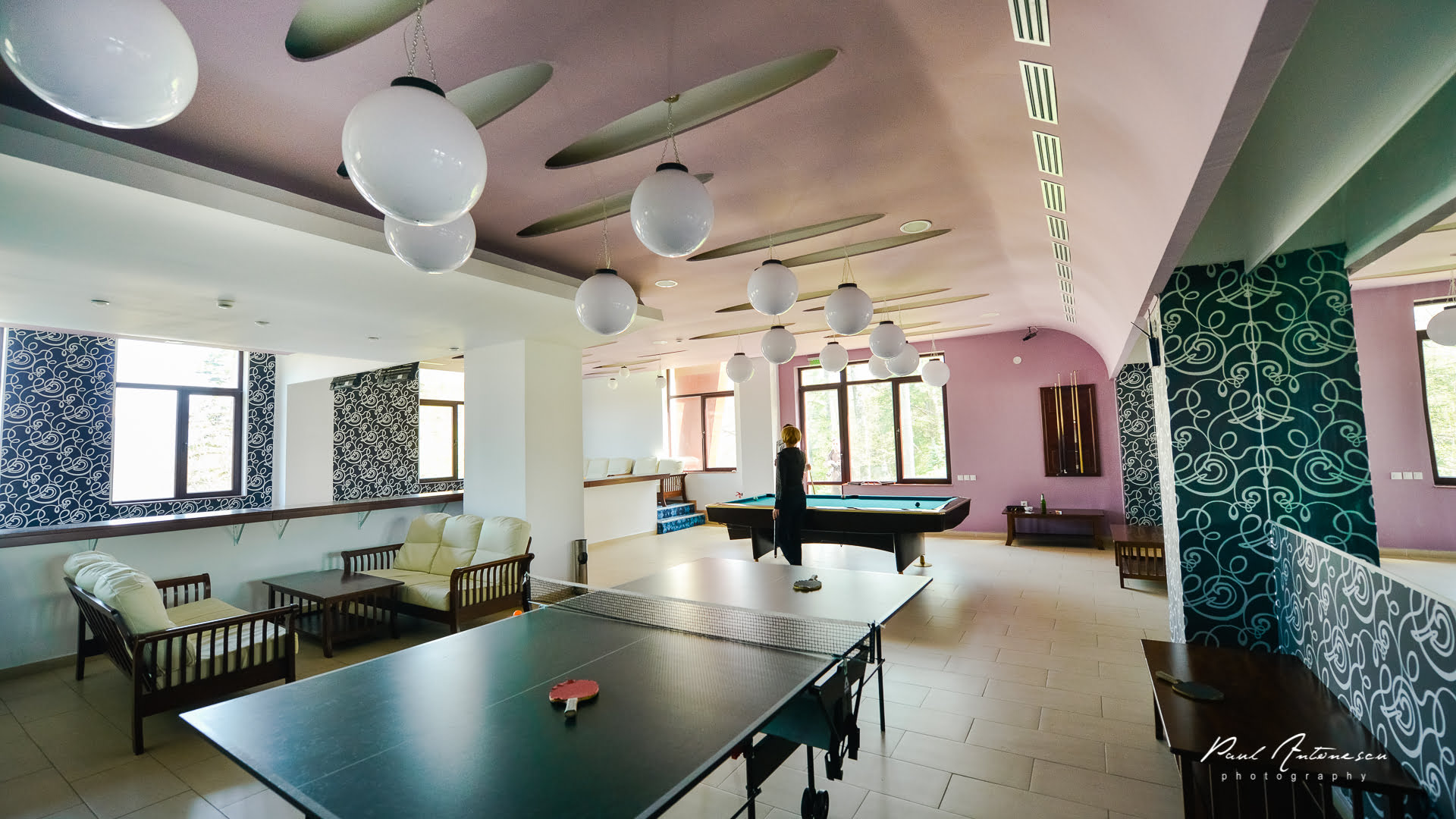 La demisol este amplasata zona SPA (piscina interioara, sauna, jacuzzi) si zona de agrement (sala bowling, biliard si tenis de masa) si o sala multifunctionala. La parterul complexului se afla receptia, barul de zi, sala de conferinte (capacitate 80 de locuri, dotata cu ecran proiectie, videoproiector, flip-chart, sistem audio, sistem traducere simultana, laptop, televizor, DVD player) si restaurantul (capacitate 160 locuri). Camerele oferite turistilor sunt amplasate la etajele 1-4.